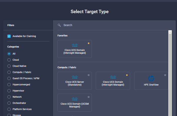 - For target type, select Cisco UCS Domain (Intersight Managed) as shown below and click the Start button. YOU HAVE 10 Minutes to perform this step (or the claim code changes)