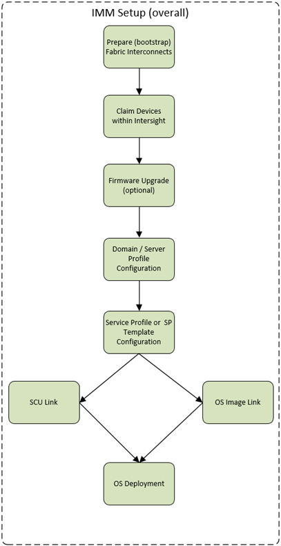 The following flow charts define route to deploying a new UCS Domain using IMM, it’s worth remembering that apart from claiming the device, most of the policies and profiles required are the same as a traditional UCSM Domain.