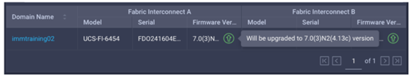 - Step three of the upgrade is simply a confirmation screen that should show both fabric interconnects with their current firmware version and an icon showing the intended firmware version as shown below. The screenshots here might not reflect the latest version numbers as screenshots won’t be updated for every new firmware release. Only click Upgrade if the target firmware version and current firmware version are different. Otherwise hit Cancel.