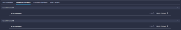 - The next step of the domain creation wizard is VLAN and VSAN configuration, notice that you can apply a different policy to the A and B fabrics. Click Select Policy for the VLAN Configuration for fabric A.