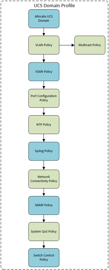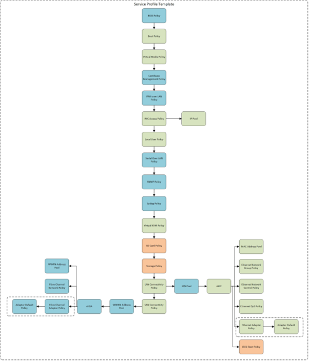 The policies and profiles required to consume and operate UCS Domain and Service Profiles are also mapped, they define the vast majority of the pools, profiles and policies required/recommended for either a base UCS Domain or Service Profile (used to consume blades).