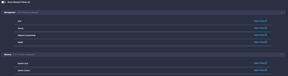 - The last step requires the creation of the NTP, Network Connectivity (DNS), and QoS Policies. You can either select existing policies, or follow the dedicated sections which detail the creation of these policies.