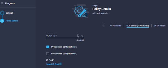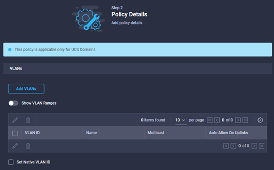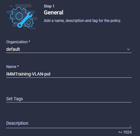 - Browse to Configure à Policies à UCS Domain à VLAN and click Start to start the wizard, enter a meaningful name and provide tags and descriptions as required. Click Next