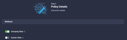 - VLAN Policy: Defines the VLANS used. A sub-policy for the multicast configuration is also required