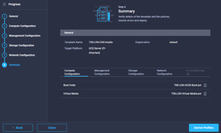 - Click create when the options have been configured, and you will be taken back to the ‘Create UCS Server Profile Template’ screen.