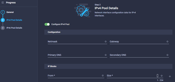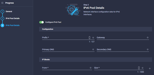 - Once the IPv4 pool is configured, click next and you will be taken to the IPv6 pool.