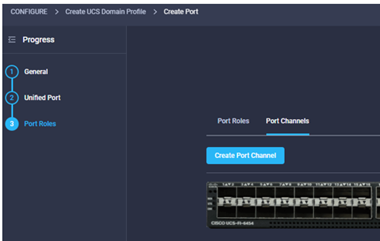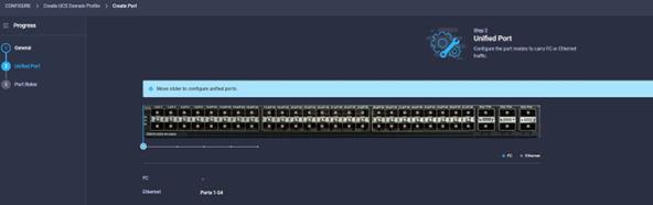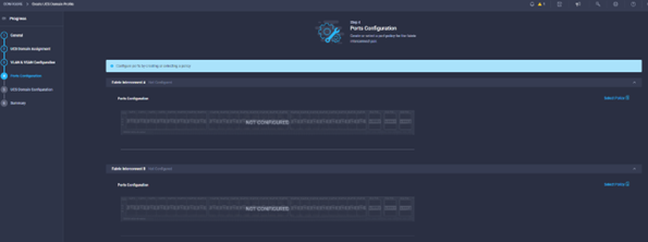 As part of a domain profile, we need to configure the ports for the fabric interconnects. This policy can be created before or during the Domain Profile configuration wizard.