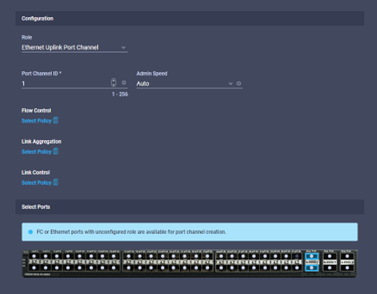 - Select the type of port-channel required as per the drop down box highlighted below: