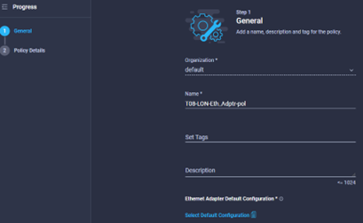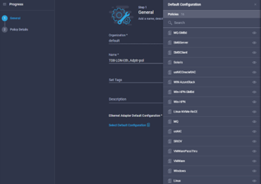- Unlike the other LAN Connectivity Policies, for the network adapter we have to define which is the Default Configuration for the Adapter: