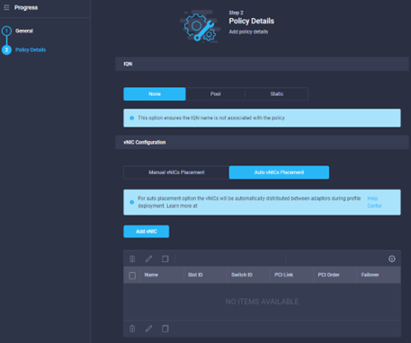 - Once the vNIC policy is complete with the policies required, click ‘Add’