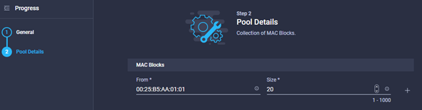 - If you are creating this from inline with the LAN Connectivity Policy, In the MAC Address Pool section, click on the Select Pool button, a blade will open from the right, select either an existing pool, or click on create new. Click create new. Otherwise, browse to Configure à Pools à
